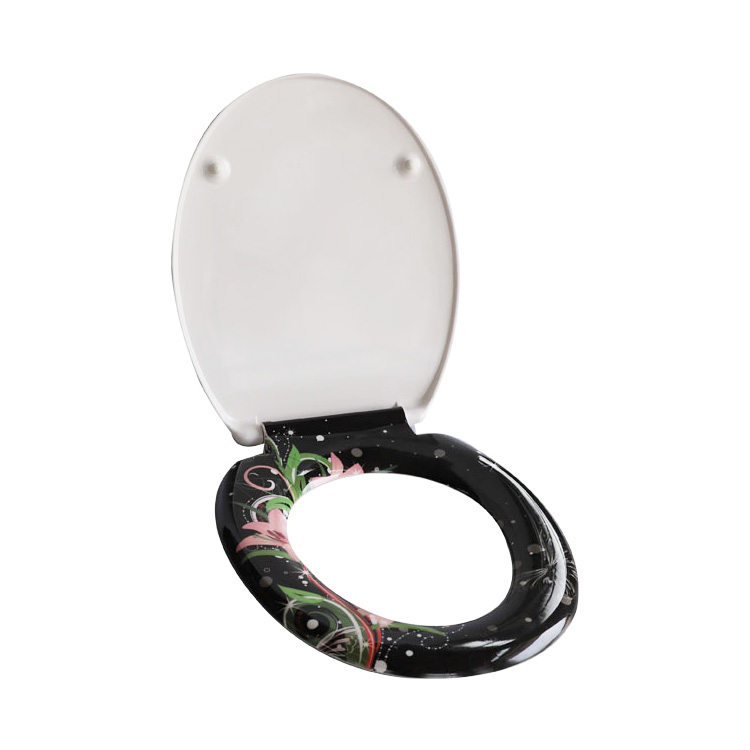 నలుపు రంగు టాయిలెట్ సీటు మృదువైన దగ్గరి కీలు మరియు ఒక కీలు మెకానిజంతో కప్పబడి ఉంటుంది, అది స్లామ్మ్ చేయకుండా ఉంచుతుంది, దీనిని సాఫ్ట్ క్లోజ్ టాయిలెట్ సీటు అంటారు. సాధారణంగా, అంతర్నిర్మిత స్ప్రింగ్లు లేదా హైడ్రాలిక్ డంపర్లు సీటును కీలు మెకానిజం వలె విడుదల చేసినప్పుడు నియంత్రిత మరియు మృదువైన మూసివేతను అందిస్తాయి. సాఫ్ట్ క్లోజ్ టాయిలెట్ సీట్లు పరిమాణాలు, ఆకారాలు మరియు పదార్థాల పరిధిలో వస్తాయి. ప్రామాణిక టాయిలెట్ సీట్లతో పోలిస్తే, అవి నిశ్శబ్ద మరియు మృదువైన మూసివేతను అందిస్తాయి. ఈ టాయిలెట్ సీట్లు శీఘ్ర-విడుదల బటన్లు మరియు పెరిగిన సౌలభ్యం మరియు సౌలభ్యం కోసం ఎర్గోనామిక్ డిజైన్ల వంటి అదనపు ఫీచర్లతో వస్తాయి మరియు వాటిని వివిధ రకాల టాయిలెట్లలో ఉంచవచ్చు.