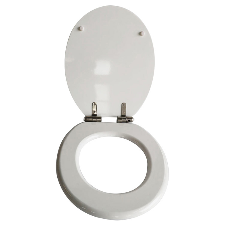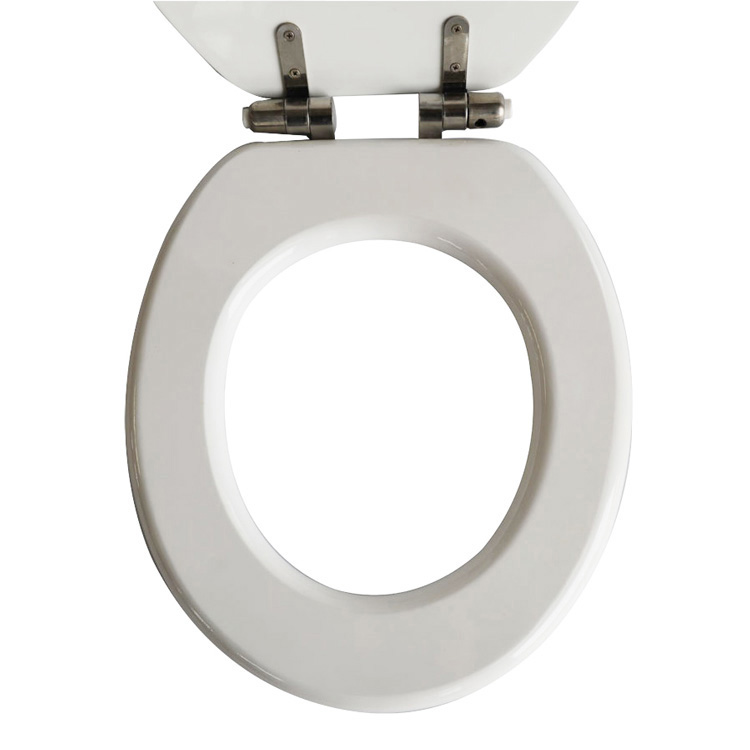 టాయిలెట్ మూత యొక్క మృదువైన ఉపరితలం ఆకట్టుకునే విధంగా పరిశుభ్రమైనది మరియు శుభ్రపరచడం సులభం, ప్రామాణిక వాణిజ్య శుభ్రపరిచే ఉత్పత్తులకు అనుకూలంగా ఉంటుంది మరియు గరిష్ట పరిశుభ్రతను అందిస్తుంది. అధిక-నాణ్యత, బలమైన MDF మరియు ధృడమైన మెటల్ కీలు కూడా మన్నిక మరియు అద్భుతమైన స్థిరత్వాన్ని నిర్ధారిస్తాయి.